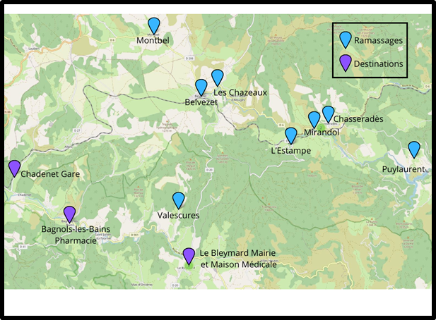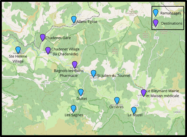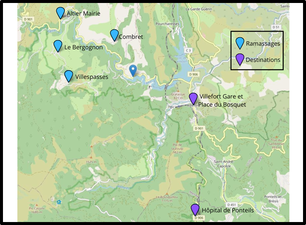 Le TAD a pour but de faciliter les trajets du quotidien : se rendre chez le médecin, à la pharmacie, à la gare, en mairie, à la France Services, ou faire ses courses. Il permet de se rendre d’un point de ramassage défini (hameaux) vers un arrêt (centre-bourg, point d’intérêt). Il ne peut se substituer à une ligne régulière, c’est pourquoi il n’est disponible que 2 demi-journées par semaine (lundi et jeudi pour le bassin de Villefort, mardi et vendredi pour le secteur Goulet).